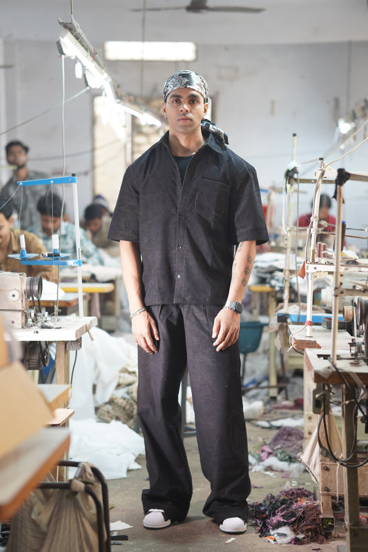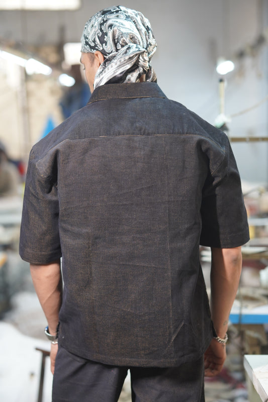 Regular price Rs. 1,569.00Regular priceUnit price / perSale price Rs. 1,569.00Black Textured Short-Sleeve Shirt