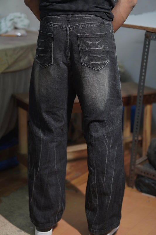 Distressed Black Wide-Leg Jeans